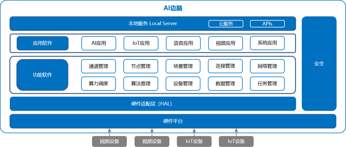 这款基于新一代人工智能操作系统打造的边缘计算终端,通过硬件适配层实现与各类IoT设备的无缝对接,结合功能软件层的算力调度与算法推理引擎,在应用软件层整合视频分析、语音告警、设备管理等模块,最终通过云服务层完成数据的全局优化。