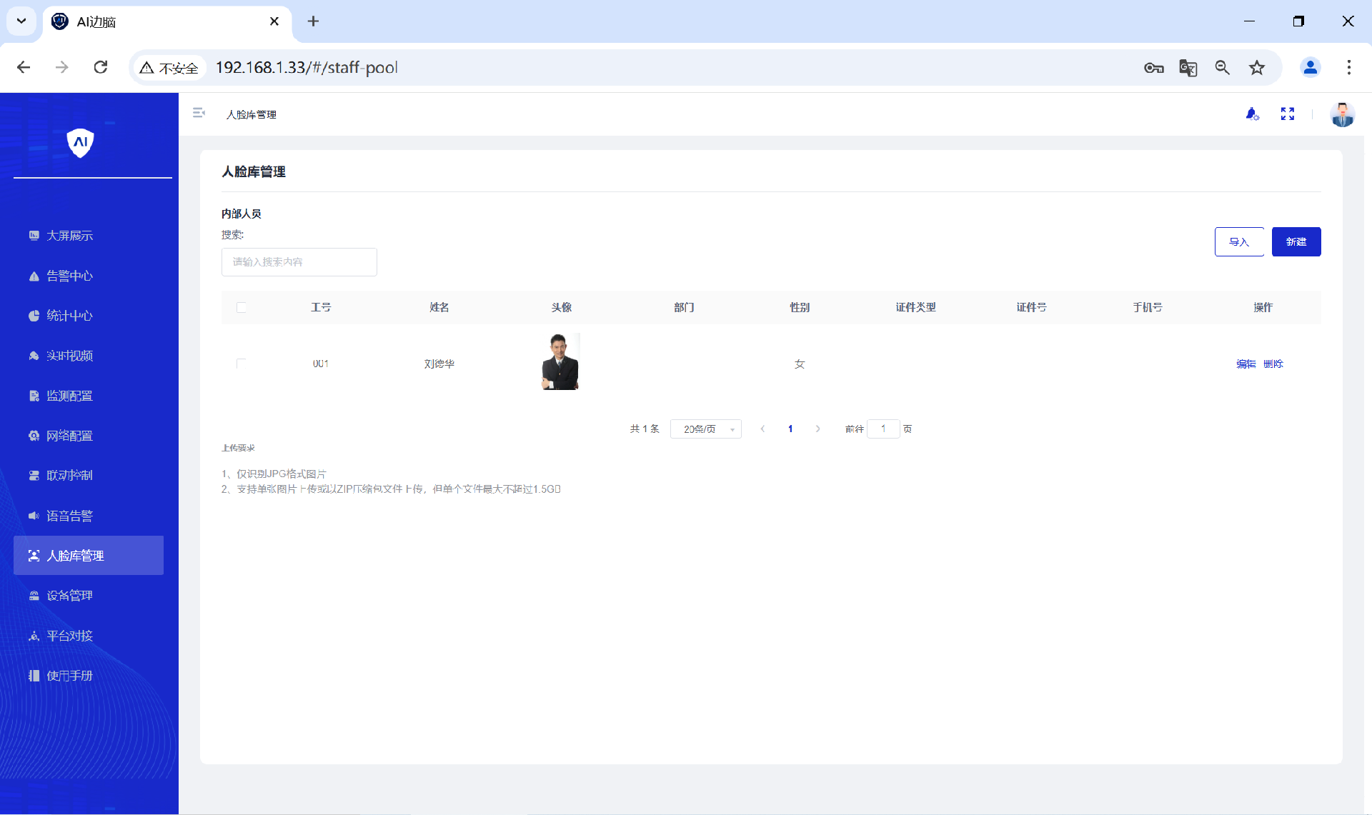 人脸库管理可添加及删除人脸,配合人脸识别做相应人脸比对识别。