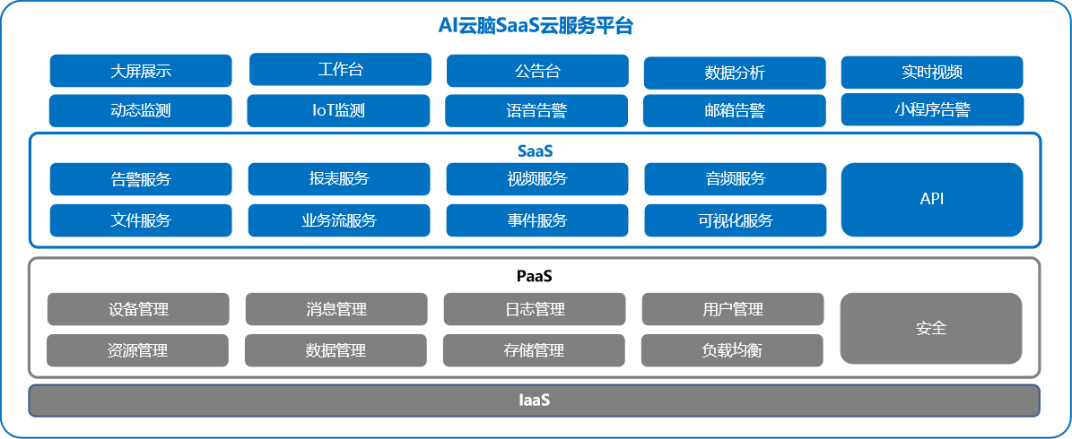 AI云脑面向垂直行业基于AIoT应用的SaaS服务平台,它基于微服务架构搭建,采用B/S架构,轻量且灵活,无需安装客户端,交互友好;在网络保证的条件下,操作处理、条件查询事务处理做到秒级响应;可通过权限配置即可获得用户所需的服务;可支持私有化部署;平台除提供基础的报表服务、告警服务等。