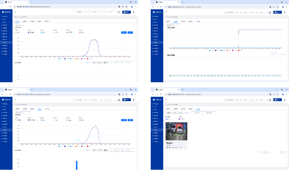 统计分析支持各统计类型的数据按照时间、部门等筛选条件进行统计分析;支持各类统计维度,包括时间维度,地点维度等;统计分析主要包括人流统计、车流统计、车位统计、人脸统计等。